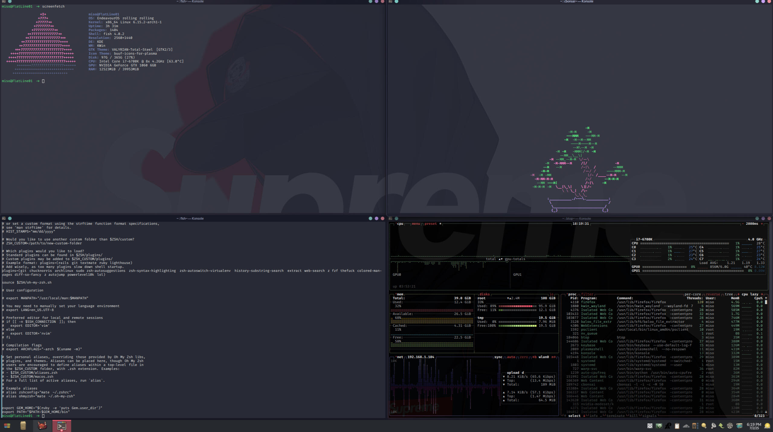 A system should feel as good as it performs. Just enough eye candy without getting in the way. Keep it minimal, windows floating or tiled, and everything accessible via hotkeys.Got some thing to clout-about? Show me yours, or fork mine. Let’s bring the terminal sexy back.